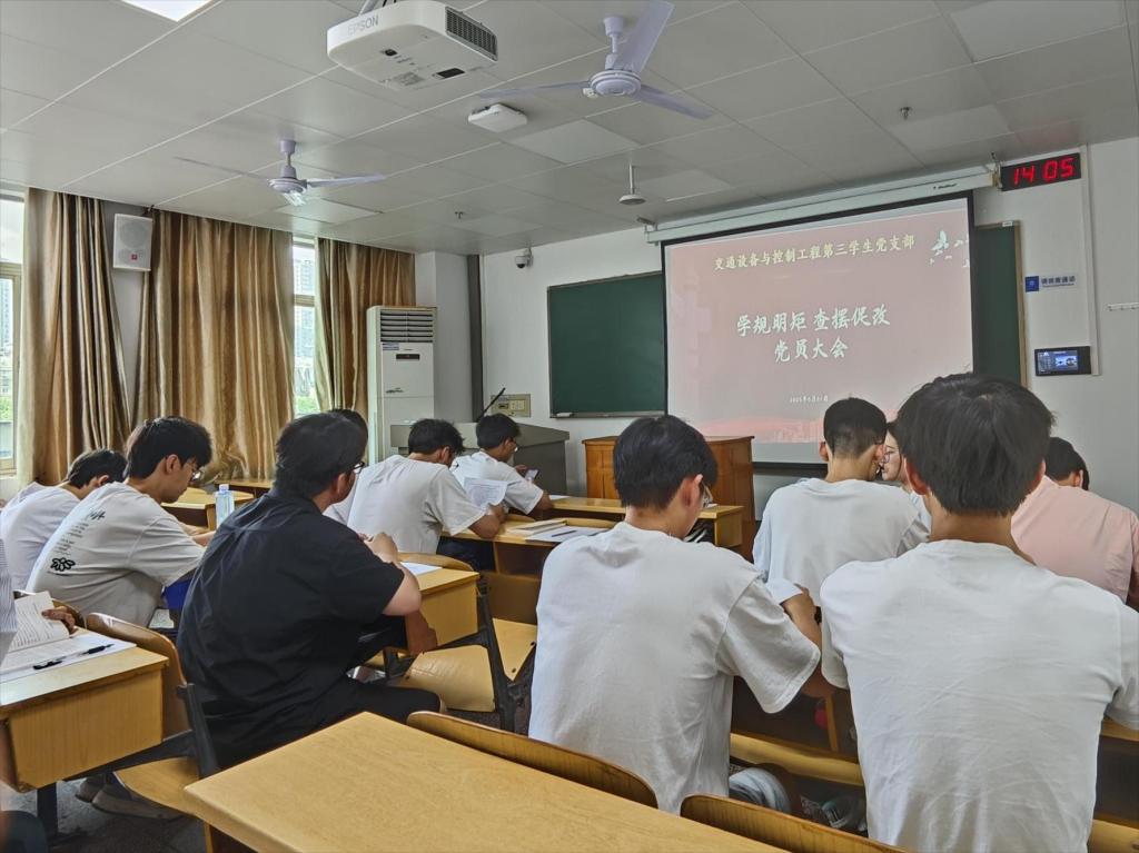 本次“学规明矩,查摆促改”党员大会的召开,进一步增强了支部党员的纪律规矩意识,交通设备与控制工程第三学生党支部将继续深入推进党风建设,以扎实有效的行动为学院的发展贡献青春力量,充分发挥党支部战斗堡垒作用和党员先锋模范作用。