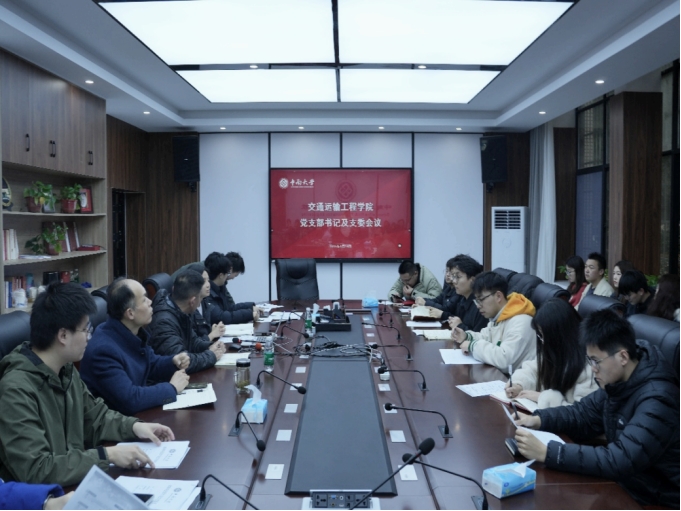 党支部支委会议于天心校区交通楼119举行。本次会议就发展党员工作进行专题研讨,由党委组织干事张佳琪老师主持,学院党委书记袁世平,党委副书记李苑,以及学院各党支部书记及支委参会。