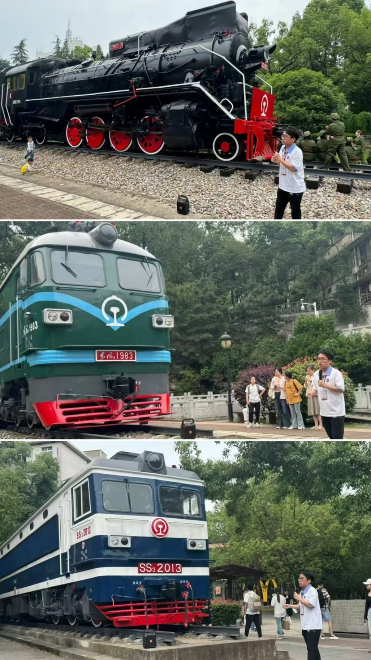 在铁路园的参观活动中,志愿者傅敬博同志以其深厚的专业知识和热情,带领学员们深入探索了蒸汽机车、内燃机车和电力机车的奥秘。这不仅是一次对铁道学院标志的介绍,更是一次对铁路发展历史的全面回顾。