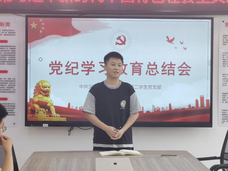 支部书记张健老师还强调,党纪学习必须做到“入脑入心、知行合一”。他指出,作为学生党员,大家不仅要深入学习党纪党规,严格遵守组织纪律,还要在实际行动中时刻牢记党员身份,始终以高标准要求自己,做到心存敬畏、行有所止,真正把纪律和规矩挺在前面,保持政治上的清醒和坚定。