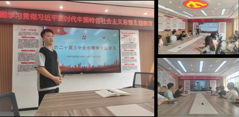 7月15日-18日,中国共产党第二十届中央委员会第三次全体会议在北京举行。为深入学习和领会全会精神,准确把握国家发展的方向和要求具,支部特别组织了全体党员集体观看新华网发布的二十届三中全会解读视频。通过视频学习,大家深入了解了三中全会提出的新理念、新方向,特别是关于党在新时期的改革发展思路与方针。党员们纷纷表示,此次视频学习使他们对三中全会精神有了更为深刻的认识,进一步坚定了跟党走的理想信念。随后,支部书记张健对于“降本增效”“资金融通”“新质生产力”做出阐释,鼓励同志们立足交通强国建设,发挥新时代交通力量。