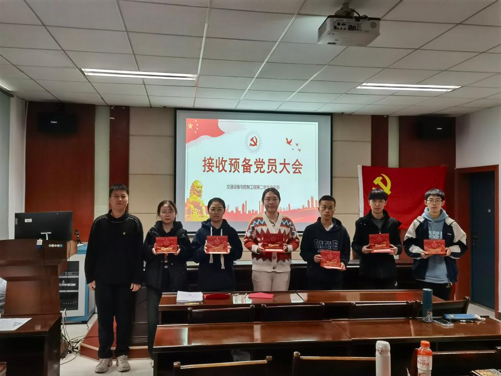 12月10日10:00,交通设备与控制工程第二学生党支部于交通楼513教室举行讨论接收游李智等六位同志为预备党员的支部大会。本次大会由支部副书记杨佳乐同志主持,大会应到有表决权的党员5名,实到会4名,符合开会条件。