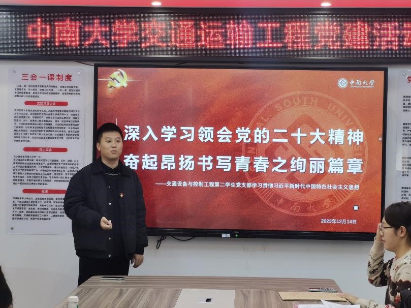 12月14日14:00,交通设备与控制工程第二学生党支部在学院党建活动室举行预备党员转正大会。本次会议由杨佳乐同志主持,支部全体党员参加会议。