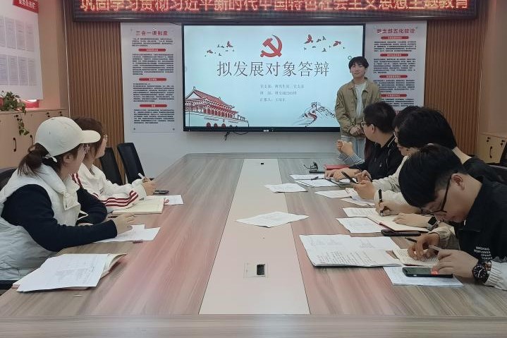 为进一步规范党员发展流程,增强党支部的凝聚力,4月11日19:00,研究生第三党支部在党建活动室举行了拟发展对象推选会,会议由组织委员侯泓阳同志主持,8名拟发展对象评选小组成员以及9名入党积极分子参会。