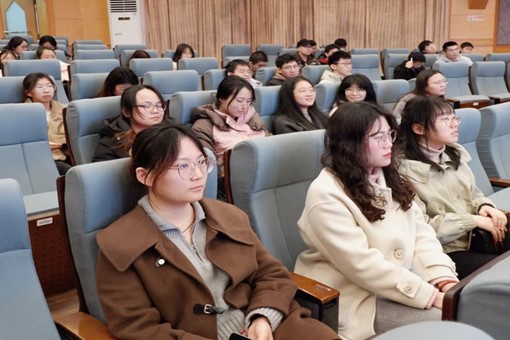 黄钰钧同志结合个人在学生时代的体会分享了自己在职业选择、备考经历及体制内新人成长等方面的经验和心得,向同学们传授了在求职和就业过程中的一些技巧,鼓励同学们多尝试、多实习、多感受,不断增强自信心。