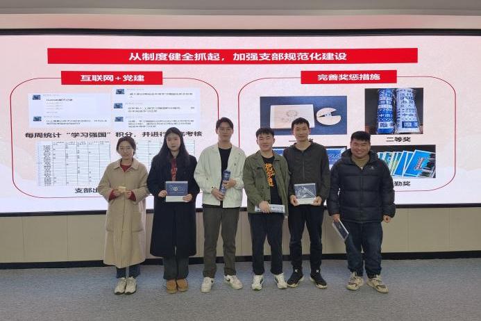 最后,大会开展党员民主评议。各位党员对照身边先进个人和典型事迹,针对个人实践进行了党性分析,并对其他同志一年内在各方面的表现进行评议,以无记名投票的方式统计评议结果。此外,根据本学期学习强国中理论学习的积分排名,支部决定为学习态度积极的同志赠送奖品以示鼓励。