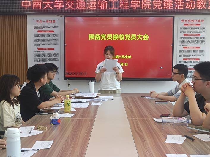 6月9日14:00,研究生第三党支部在综合实验楼530举行了接收预备党员暨预备党员转正大会。支部书记苌艳路同志主持了此次会议。