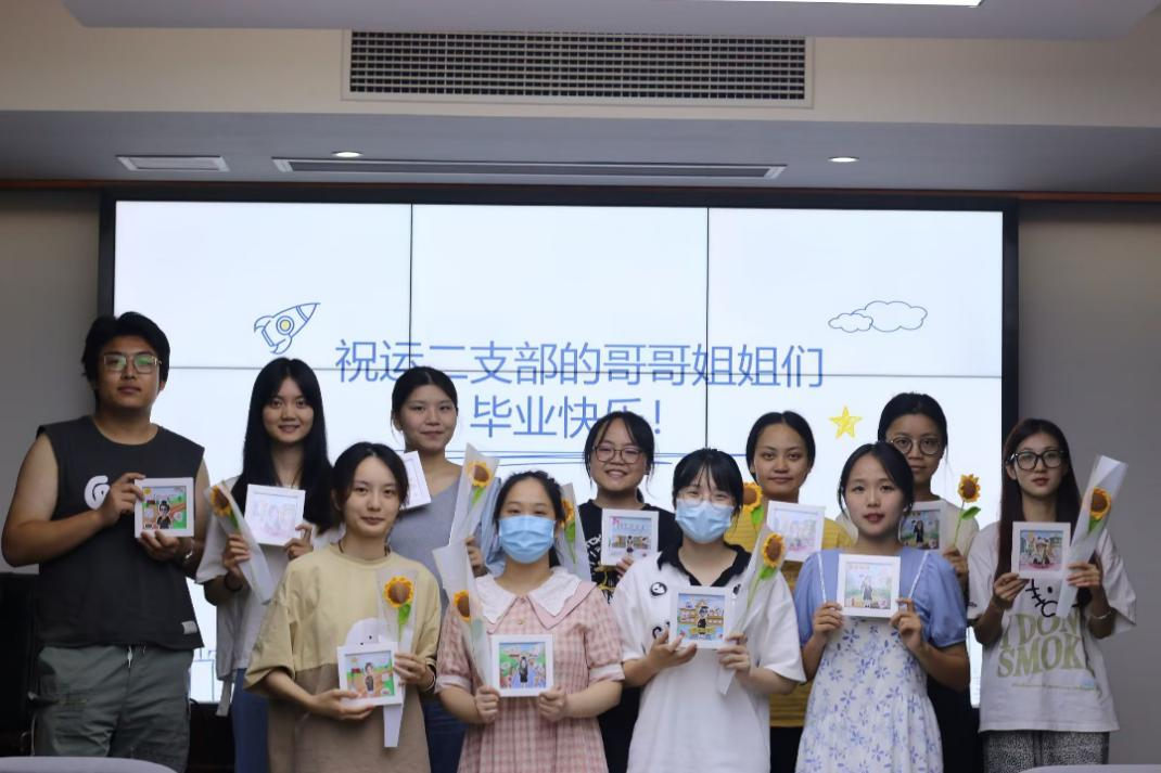 随后,由刘思序同志主持毕业生党员欢送会。毕业生党员分别上台进行经验分享与毕业寄语,并由其他同志为每位毕业生党员赠送纪念礼物。
