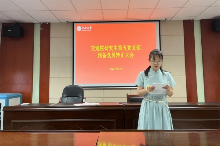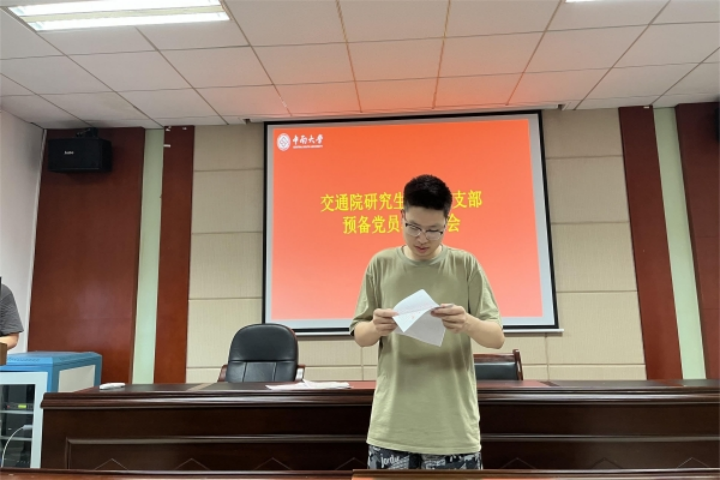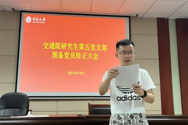 研究生第五党支部在交通楼513会议室举行全体党员大会,共有14名正式党员同志、3名预备党员同志参加会议,会议由支部书记冯推银同志主持。