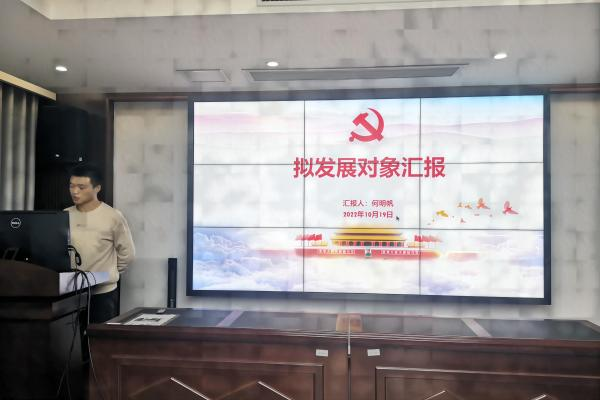 会议伊始,曾捷同志介绍了推选发展对象的流程及相关事宜。随后,各位入党积极分子分别从个人情况、对党的认识、入党动机、自我不足与改进等方面向党组织汇报了个人的实践、学习和生活情况。其中,何明帆同志提出入党积极分子要通过服务群众来提升个人价值,彰显了一名退伍军人的爱国情怀和入党决心。蔡逸颖同志则展示了自己成为入党积极分子一年来思想上从感性到理性的转变过程,她从实践出发,通过阅读原著、参与基层党建实习、参加团史知识竞赛等活动,提升个人对党的理论知识水平。发展对象候选人陈述完毕后,支部成员结合其汇报内容等进行了问答交流。