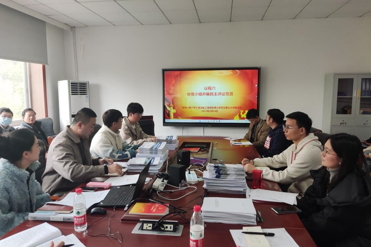 2月25日上午9:30,交通院博士研究生第五党支部全体成员在交通楼304参加2022年度支部书记述职暨民主评议党员大会,学院党委委员张英贵同志出席会议。会议由支部副书记黄裕同志主持。