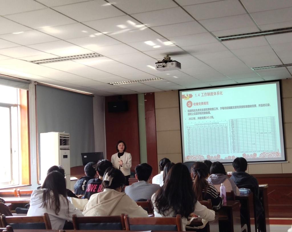 随后,支部书记张佳琪同志向全体支部党员作2022年度交通运输与物流工程学生党支部工作述职报告,重点总结了过去一年支部的“五化”建设和党员发展,并提出未来展望。她表示,2022年支部的各项工作进展顺利、成果喜人,但也针对存在的一些问题点明了改进方向:一是支部成员理论学习系统性不足,应落实落细整个学习过程;二是入党积极分子培养过程的管理有待加强,需要制定培养考察规范并强化管理;三是对党员的党性分析、日常思想变化关注较少,之后应增加组织和支部同志的谈话频次,及时跟踪支部同志的思想动态。
