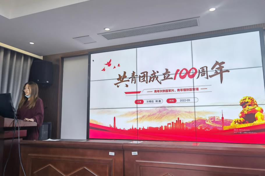 紧接着,孙楠佳、韩鑫同志就习近平总书记在庆祝中国共产主义青年团成立100周年大会的重要讲话精神进行了党课宣讲。首先,孙楠佳同志为同志们播放了关于中国共青团发展历史的学习视频。接着,她紧密结合习近平总书记在大会上的讲话内容从四个方面对重要讲话精神进行了全面解读。最后,她摘录了习近平总书记本次讲话的部分金句与支部同志进行分享。
