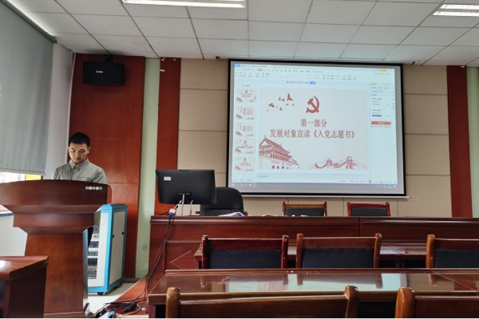 会议伊始,全体起立,奏唱国歌。由李欣钰同志介绍本次会议流程及要求,随后蔡瑞军、成灿慧与刘哲霖三名发展对象依次宣读《入党志愿书》,分别详细地介绍了个人基本情况。汇报结束后,入党介绍人分别阐述了三位发展对象的基本情况及考察意见,参会党员同志对该同志能否成为预备党员充分讨论并发表意见,刘京同志代表支部委员会报告了对三位同志的审查情况。经大会表决,赞成人数超过应到会有表决权的正式党员的半数,支部同意接受三名同志为中共预备党员。