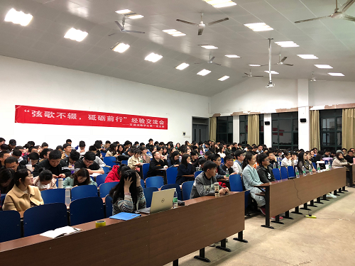 会议伊始,现于长沙站工作的14级优秀毕业生李亮同志为大家分享工作经验。他从就业的素质、思想、技能以及信息准备四个方面,让同学们结合自身实际情况尽早确立目标,树立正确的就业观。随后,他还强调了简历的真实性及针对性,并希望同学们未来能脚踏实地工作,找到自己理想的生活状态。