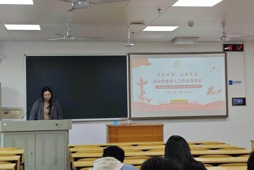 1月8日16:00,研究生第二党支部在世纪楼A202教室召开支部党员大会,对支部本年度的工作进行总结汇报,旨在凝聚思想共识、总结工作成效、明确奋进方向。本次会议由支部书记胡奕同志主持,支部全体党员参加会议。