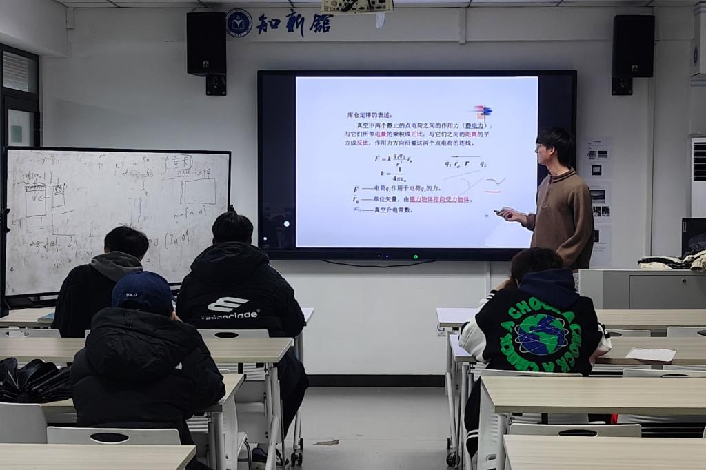 12月10日19:00,大学物理B辅学课程于知新馆团辅C室准时开课,该课程专门针对交通学院23级学生,围绕大学物理B中的核心内容 —— 静电场展开深入辅导。静电场作为大学物理知识体系中的关键部分,其概念抽象、原理复杂,一直是众多学生学习的难点所在。在近两个小时的辅学时段内,张霈杰同学运用系统且条理清晰的讲解方式,从电场强度、电势等基础概念入手,结合严谨的理论推导与实际案例分析,逐步深入,将静电场的知识网络完整地呈现给同学们。他注重与同学们的互动交流,耐心解答每一个疑问,有效帮助同学们攻克了知识难关,课堂学习氛围浓厚,同学们均表示对静电场知识的理解和掌握有了显著提升。