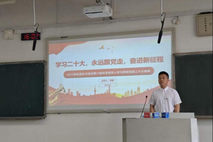 团委书记张健带结合工作实际,从党的二十大报告的十五个部分,讲述了中国共产党的实践成就、理论遵循、使命任务、行动纲领、重要保障和必由之路六个板块。团支书们通过现场提问、全体共读的方式加深学习感悟。张健老师以习近平总书记对青年们“有理想,敢担当,能吃苦,肯奋斗”的期望为切入,强调团支书作为重要学生干部,要更好地服务于广大老师和同学,成为为人民服务的“螺丝钉”和“万能砖”。