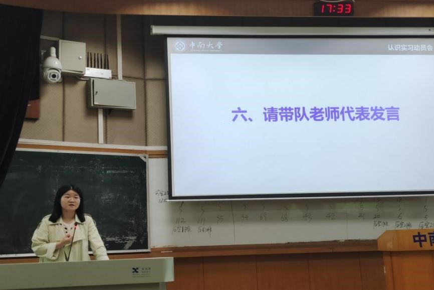随后,认知实习带队老师代表饶燕妮老师进行发言。她建议同学们要珍惜机会,将理论知识与实践相结合,虚心向现场指导老师求教,总结复盘,交流分享,在认识实习过程中做好未来人生的规划。