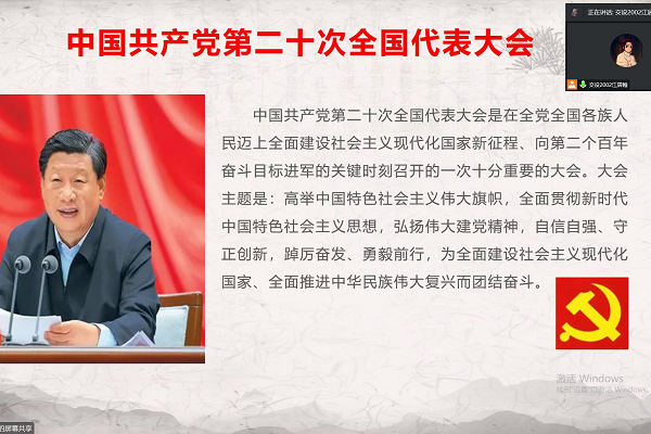 随后,同学们观看了二十大的金句剪辑视频,快速了解了二十大报告中习近平总书记发言的重点和相关内涵。班会上,团支书组织了党史知识快问快答和红色经典歌曲听歌识曲小游戏,让同学们在轻松愉快的氛围下进行党史知识学习。