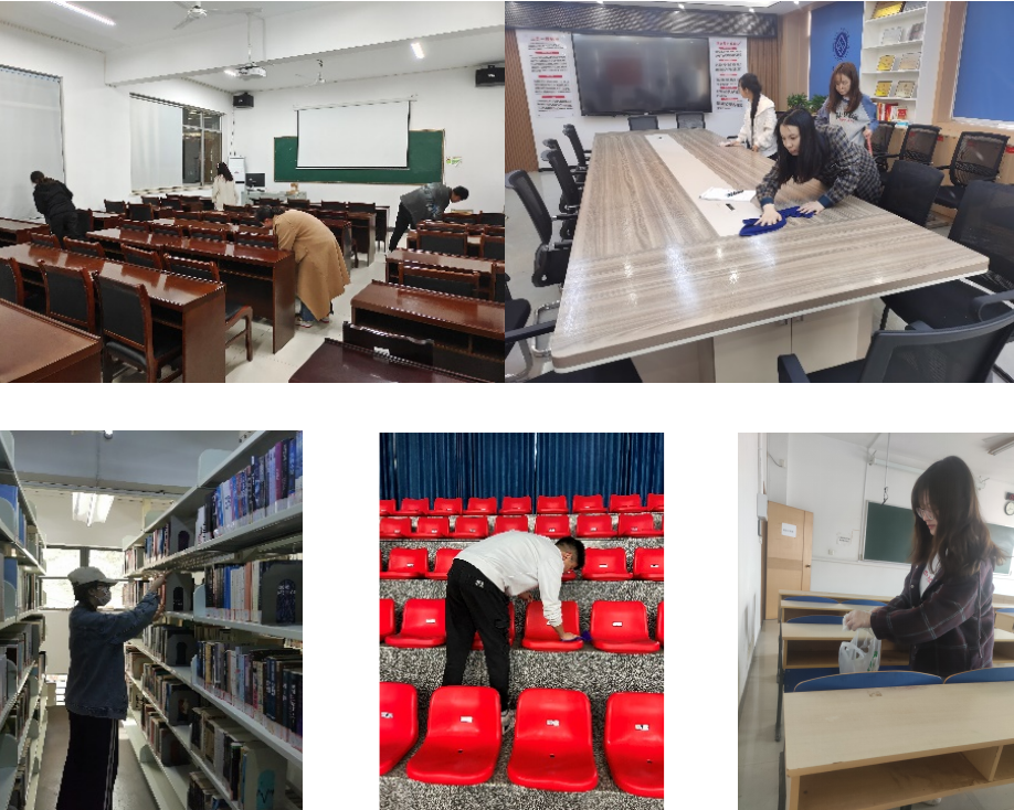 随后的一周时间里,研究生会工作人员与组内组员协商时间,统一带领小组分别到交通楼、第一综合实验楼、第二综合实验楼、图书馆、羽毛球馆等公共区域完成志愿活动。看着清洁一新的场域,志愿者们露出了欣慰的笑容。