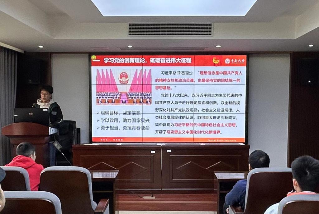 会议伊始,主持人引用习近平总书记关于理想信念是中国共产党人的精神支柱和政治灵魂的重要论述,明确指出学习会的目的和意义。随后,与会成员共同学习了习近平新时代中国特色社会主义思想的核心要义、理论体系和实践要求,深刻领会了理想信念对于青年学子的重要性。