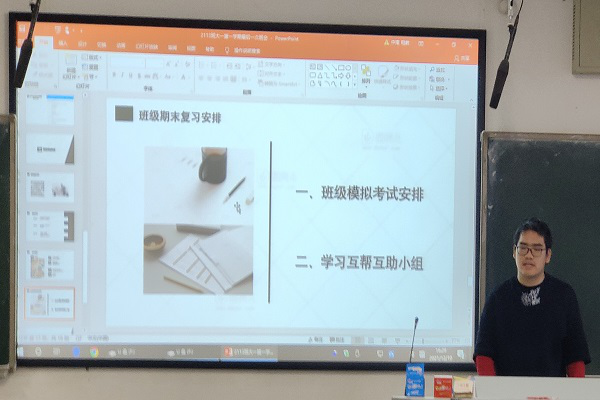 随后,学委李博宇向班级同学介绍学校期末考试安排和班级期末考试月复习安排。接下来班级将以组织期末自测、组建学习互助小组的形式,一起迎接期末考试月的到来。