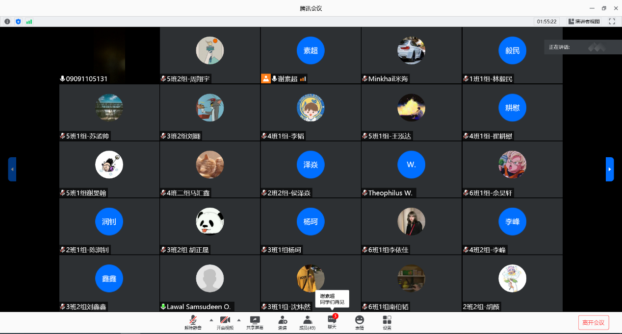 会议开始,谢素超老师先向同学们介绍了各班带队老师,紧接着谢素超老师介绍认识实习的目的、纪律要求排以及成绩评定标准等各项相关事务,让同学们充分认识到认识实习的重要性。接下来谢素超老师介绍了本次认识实习带队老师与同学分组情况,以及实习时间安排与实习相关要求。谢素超老师强调了虽然本次实习在线上举行,但是大家依旧要认真对待,按时完成实习报告,谢素超老师最后强调了线上实习的组织纪律问题等。