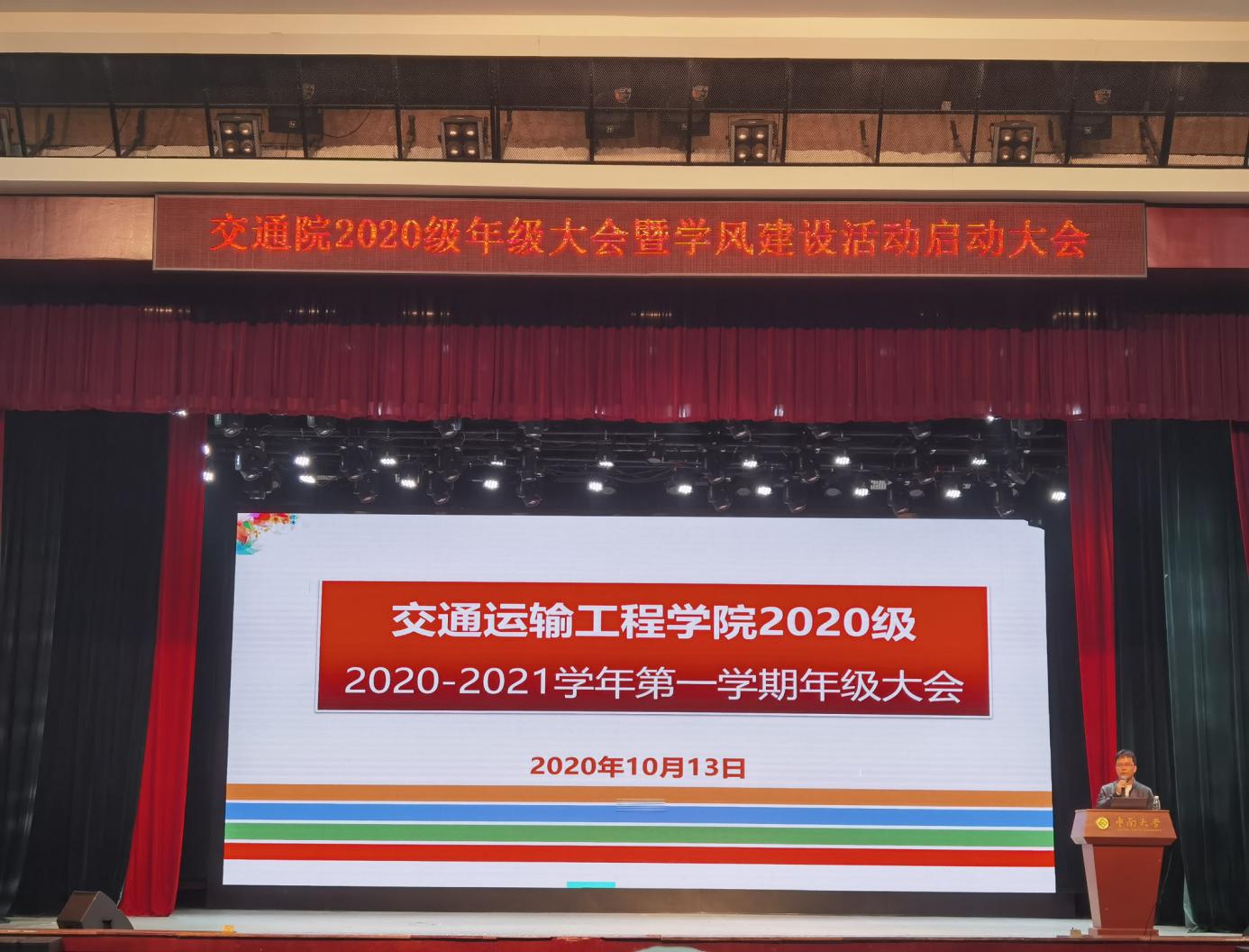 南校礼堂如期举行。学院党委副书记宋晓东老师、2020级辅导员曹超老师、石晓琪老师以及交通院全体20级学生参加了此次会议,会议由曹超老师主持。