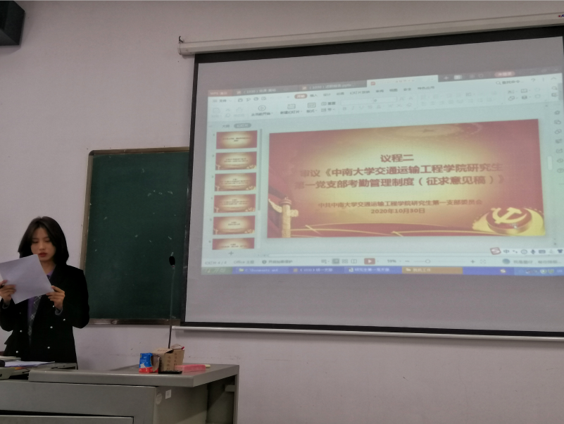 10月30日上午9时,交通院研究生第一党支部在交通楼509召开了党支部大会及专题组织生活会,支部全体党员及入党积极分子出席本次会议,会议由支部书记黄裕同志主持。