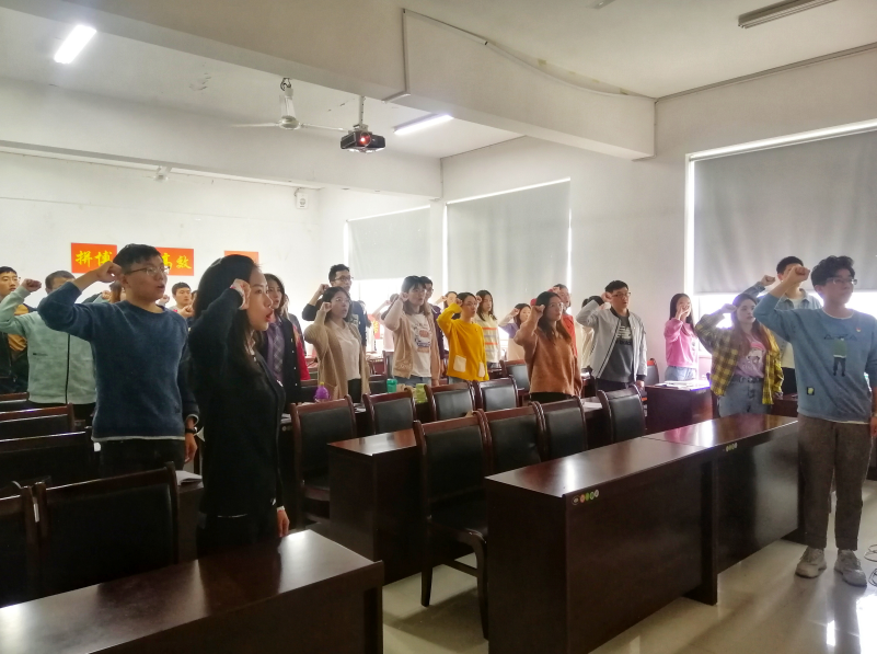 大会最后,支部副书记李泽宇同志带领大家面向党旗庄严宣誓。铿锵誓言在室内久久回荡,现场所有党员和入党积极分子更加坚定牢记自己的庄严承诺,始终以人民利益为重,不忘初心,坚守使命。