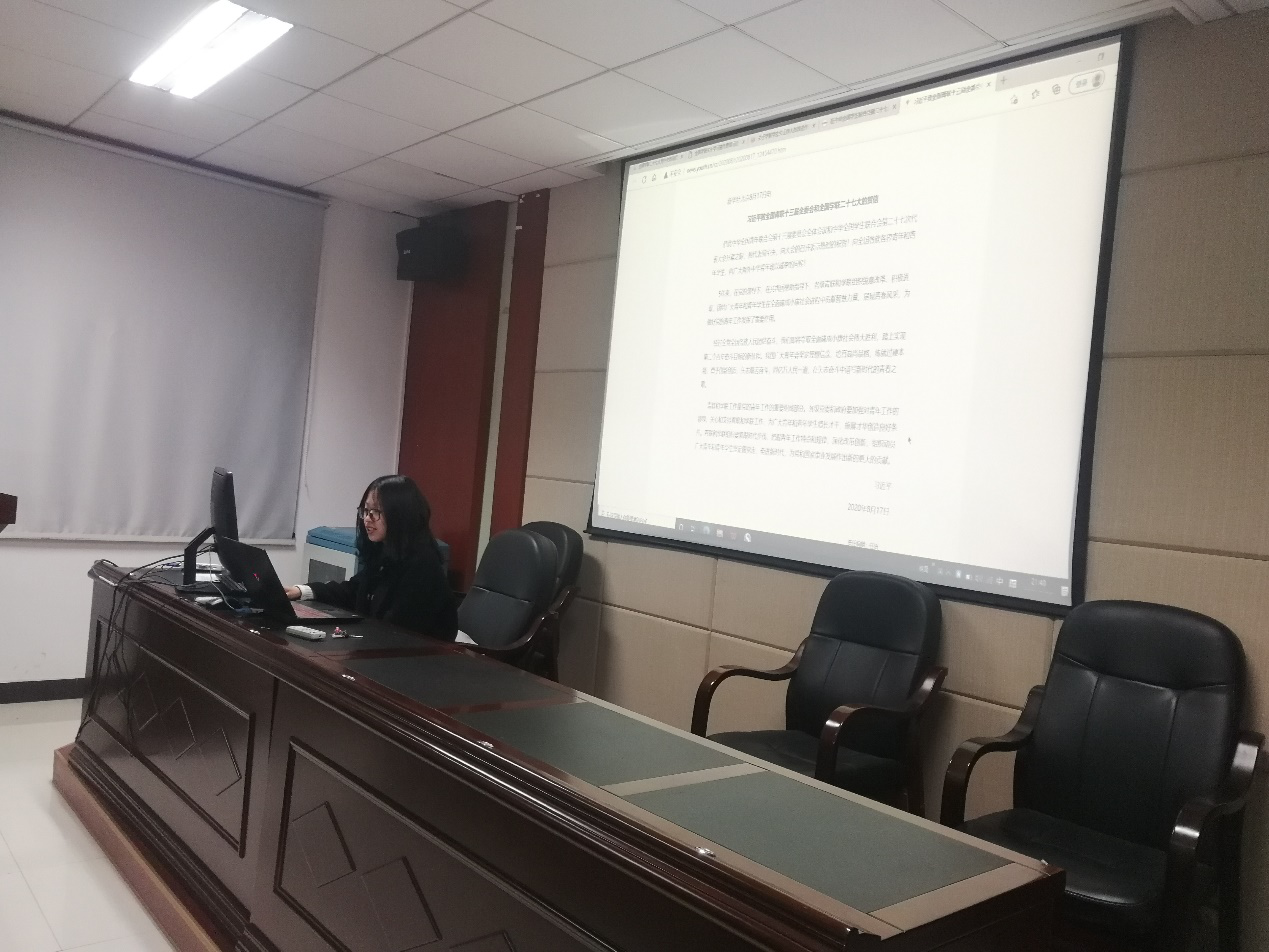 与会学生干部们认真研读文件内容,结合工作实际,纷纷畅谈了自己的心得体会。任老师强调,作为学生干部,应该坚定理想信念,树立正确的三观,积极团结同学,不搞形式主义,紧紧和同学们站在一起,切实服务广大同学,将学生会和研究生会发展成作风优良、团结紧密的优秀队伍。