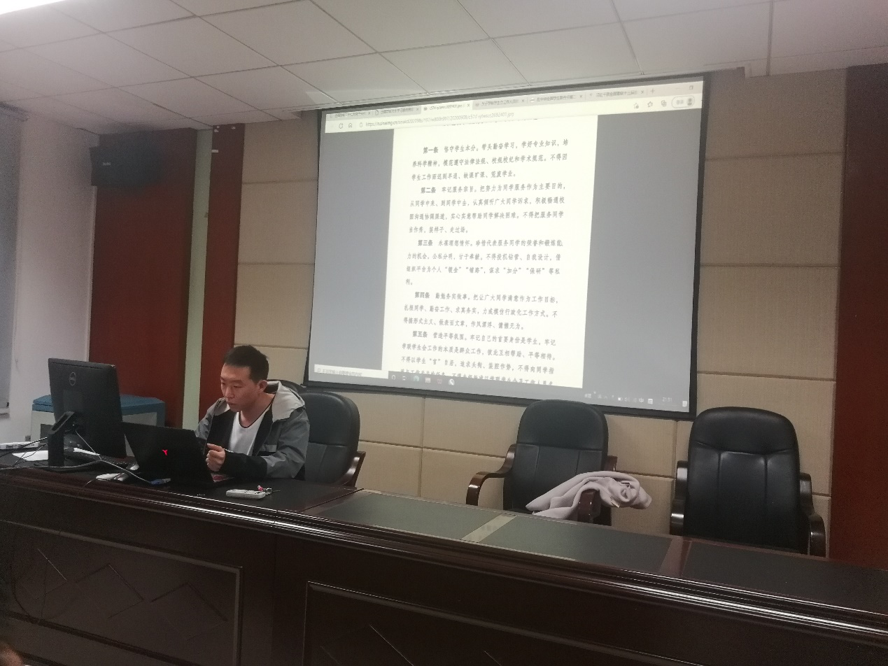 19级辅导员任琭老师主持,全体学生会和研究生会干部参加。