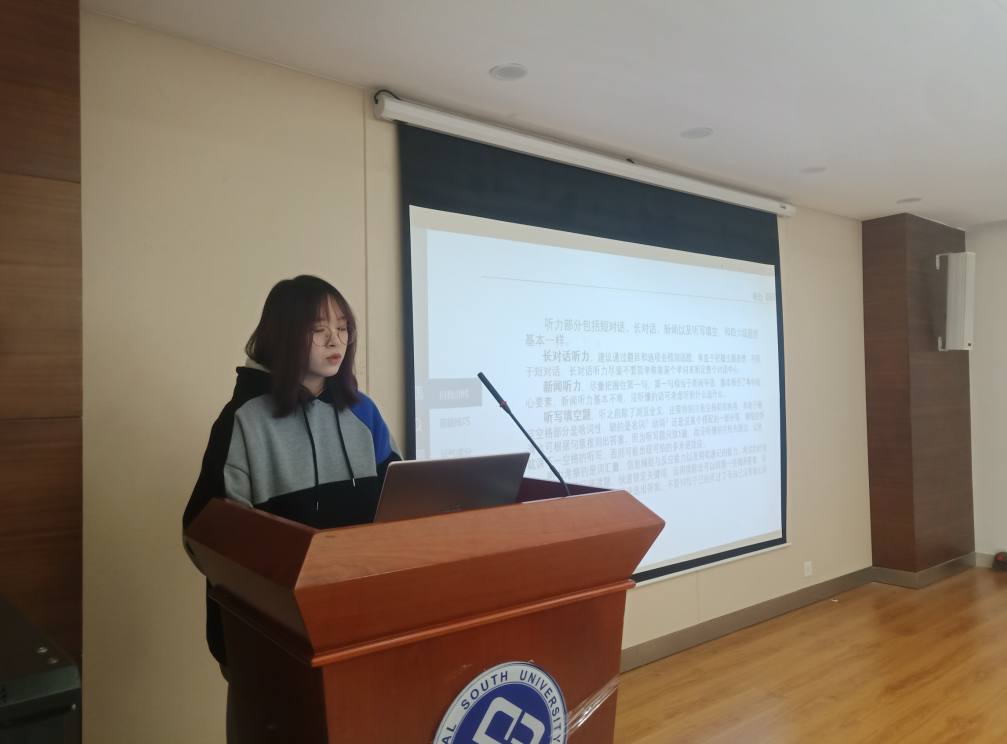 会议伊始,两位代表先给大家介绍了他们所参加的一些竞赛,并分享了一些个人技巧。交运1801班的陈林娴同学率先和同学们分享了她关于全国大学生英语竞赛的经验,让在场同学大致了解了竞赛流程。她还讲述了自己的看法,尤其强调了学习英语过程中兴趣的重要性,这是学好英语的第一步。另外物流1801班的李明哲同学也分享了一些竞赛细节,通过结合自己竞赛中导师与课题的选择,他让大家更深地感受准备竞赛过程的苦与乐,从而理解竞赛的真正意义。