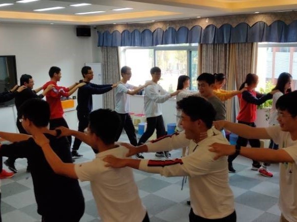 紧接着,团辅活动进入游戏环节。在“千千结”游戏中,同学们手拉手随意站开,形成一个难解的结。欢声笑语里,大家各出奇招,有的钻过去的,有的跨过去,还有的躺着从地上绕过去。终于,在大家的通力合作下,“千千结”解开,变成了一个完整的圆。