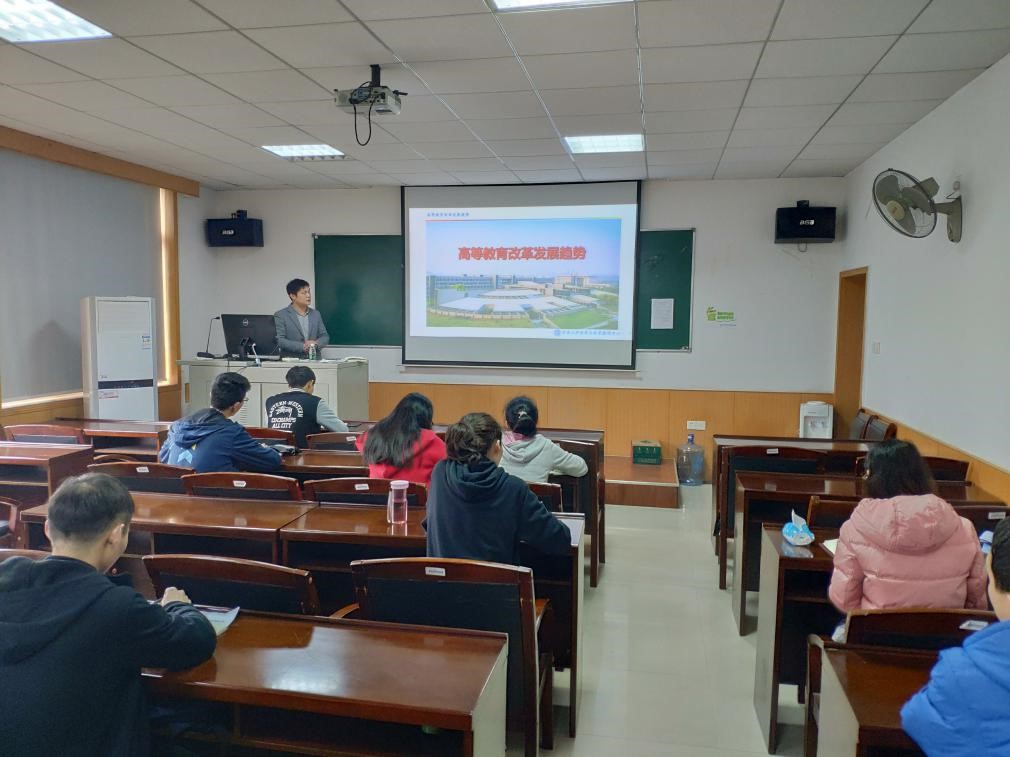 黄老师从“认识并遵循高等教育规律”、“与世界高等教育发展同频共振”以及“我国高等教育改革发展的奋进之笔”这三个方面分析了我国高等教育改革的趋势。此外,他还结合多年的思政工作和学工辅导经验,举出多个事例,向大家强调了本科教育的重要性,并介绍了我国部分高校在高等教育改革上的创新举措。