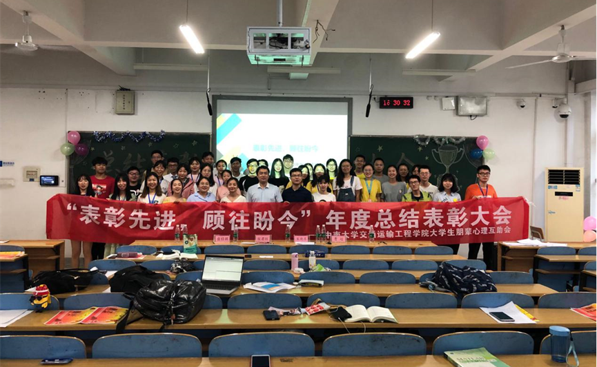 6月5日下午三点半,交通院大学生朋辈心理互助会“表彰先进,顾往盼今”总结表彰大会在新校区B215教室成功举办。交通院党委副书记宋晓东老师,交通院心理专干、15级辅导员侯君红老师,16级辅导员曹超老师,17级辅导员张佳琪老师出席了本次活动。15级、16级、17级、18级的心理专干和各班心委以及心助会全体成员参加了表彰大会,本次大会由王梦婷、尉迟振鑫同学主持。