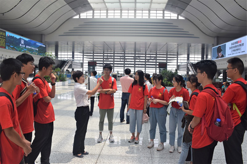 7月12日,实践团前往沈阳货运中心,正式开启本次社会实践。在接下来的两天里,由中国铁路沈阳局集团有限公司的优秀校友带领,实践团成员先后参观了蒲河物流园、沙岭物流园、沈阳站以及沈阳南站。实地的参观学习,使同学们对铁路客货运输有了初步的了解。
