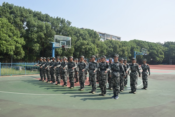 高辉老师从远方走来,他着一身军装,竟一下年轻了10岁。一幅眼镜透露出他渊博的知识与儒雅的性格,左肩的军徽又无形中具有强大的威慑力。腰下束一条皮带,脚上蹬一双皮鞋,又无不彰显着军训的正式性和严肃性。