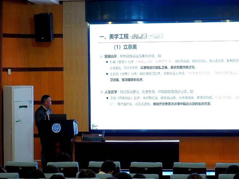 讲座伊始,章易程教授便以独特的“理工视域”破题,指出美学与工程并非割裂,而是相辅相成。他将一项完美工程的诞生精妙地概括为“美学工程三阶段”:首先是“构思的想得美”,其次是“工艺的做得美”,最终是“成效的共得美”。这一新颖的视角,立刻引发了在座理工科学子的强烈共鸣,让大家意识到严谨的逻辑思维与浪漫的美学追求实为一体两面。随后,章教授将话题引向古典诗词的审美殿堂。他提出,诗词审美同样可分为三个循序渐进的阶段:第一步,理解写作背景,力求感受初心;第二步,领会诗词的立意、意境及工艺,力求感受匠心;第三步,自品美感,力求独立思考,力求高度自洽,从而获得专属的审美体验与精神享受。