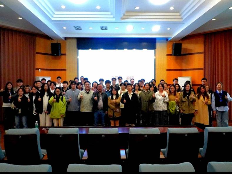 章教授妙语连珠,同学们沉浸其中,深受启发。讲座尾声,全场响起经久不息的热烈掌声,向章易程教授致以诚挚的感谢。最后,全体与会同学上台与章教授合影留念。本次讲座不仅是一场古典诗词的导读,更是一次文理思维的碰撞,它启迪同学们在钻研专业技术的同时,不要忘记拾取人文领域的瑰宝,努力成长为一名既有科学精神又有人文情怀的复合型创新人才。