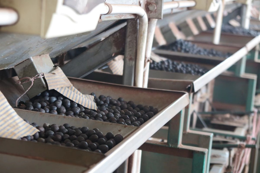 参观完基地后,实践团队跟随王经理进入了生产区。庞大的机器隆隆作响,完成了从筛选莲子大小到脱壳的加工过程,随后高清摄像头捕捉并剔除破碎莲子。这一系列流程,完全由机器完成。在过去,这一生产过程十分耗费人力,但在实现机械化后可以节省三十到四十人的人工成本,产出效率及产出完整率也得到了极大提升。实践团队感叹,这就是科技发展带来的便利。