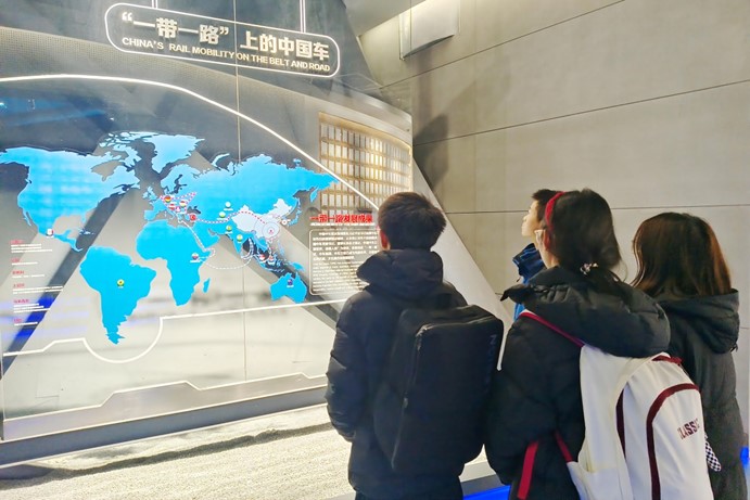 接着,讲解员带领实践团来到产品秀场,各类精细绝妙的工艺品吸引了实践团的目光。经过细致入微的打造,一个个动车组模型令人叹为观止,成员们从中感受到中车株机公司追求卓越、精益求精的工匠精神,中车株机对我国轨道交通行业的巨大贡献。