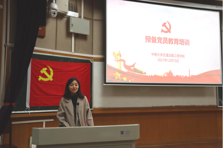 预备党员培训会议在世纪楼C101教室举行,该会议由学院研究生辅导员、党组织干事张佳琪同志主持,交通院党委书记贺志军、党组织干事朱显研以及支部全部党员同志及预备党员参与了此次会议。
