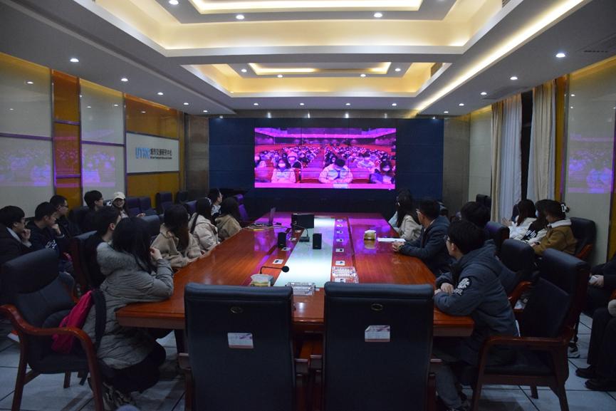 分团委、学生会、研究生会在交通楼518室观看了此次云宣讲的现场直播,共有30余名学生骨干参加。