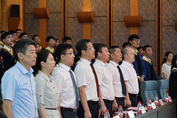 副院长彭勇宣布2022年授予工学博士和硕士学位名单,副院长陈维亚宣布学士学位学生名单。在本届毕业生中, 8人获工学博士学位、39人获学术硕士学位、85人获专硕硕士学位、350人获工学学士学位。