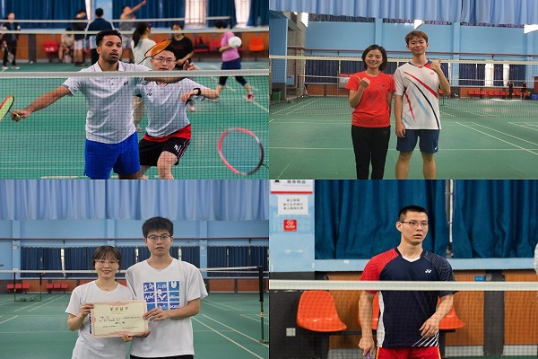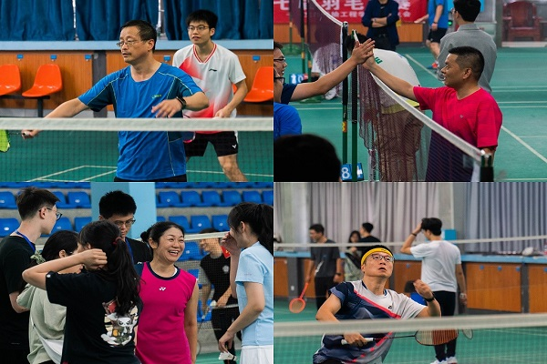 23日上午的比赛为师生交流赛,包括男双、女双、混双三项,老师们也热情澎湃地参与其中,由老师和学生组成师生联合队,各队都以饱满的激情投入到比赛中,呈现了一场场精彩的较量。冯芬玲老师还在现场教授同学们技术要领,各队伍在休息时也积极分析上盘得失,讨论战术策略。经过一番激烈的比拼,胡心磊老师和海洋同学获得男双冠军,林鹏秀同学和张璐同学获得女双冠军,冯芬玲老师和欧宇恒同学获得混双冠军。