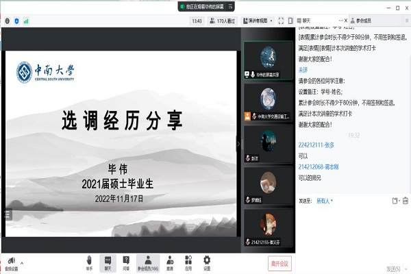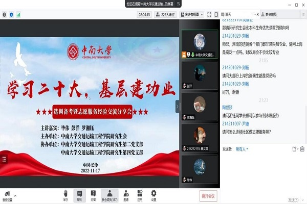 为加深同学们对选调备考的认识,正确把握选调生政策,提高冲刺阶段备考质量,11月17日晚19:30,“学习二十大,基层建功业”选调备考暨志愿服务经验交流分享会在线上顺利举行。本次活动由av直播