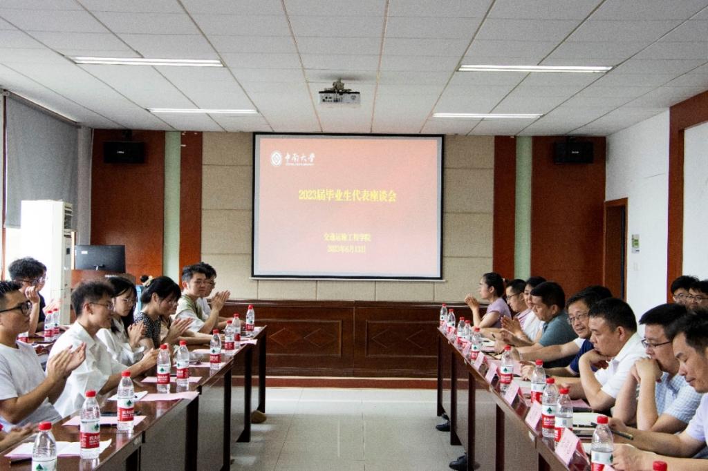 会议伊始,宋晓东副书记代表学院党委表达了对毕业生圆满完成学业,即将踏入崭新人生旅途的祝贺。随后,贺志军书记鼓励毕业生们对学院各项工作提出建议。紧接着,几位优秀毕业生代表发言,分享了自己在中南交通院的学习生活经历,回忆了领导、老师们对他们在专业方向上的指引、科研上的指导和生活中的关心,表达了对老师、对学院真挚的感恩与祝福。毕业生们或是深入基层一线、或是走上企业岗位、或是继续读研深造,他们畅谈未来的人生发展规划,交流感悟,也为学院专业人才的培养、学院未来更好的发展提出了建议。