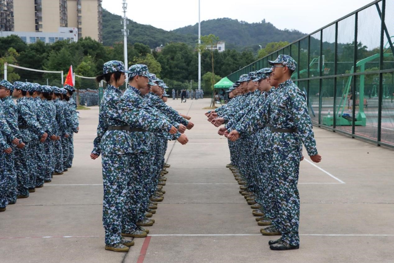 训练场上,坚毅的眼神,挺拔的身姿,这是新生们每日必不可少的训练内容——站军姿。随后,教官一声令下,新生们瞬间反应,听从指令,立正、稍息、跨立、停止间转法、敬礼礼毕,动作迅速,姿态标准。新生们不负这几天的磨练,终将展露头角。